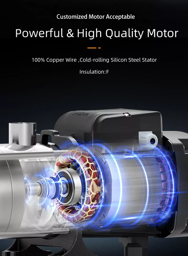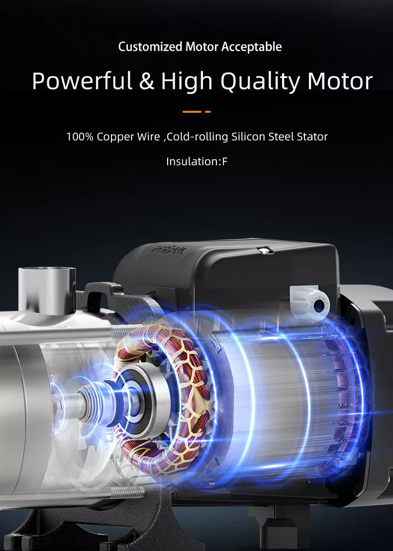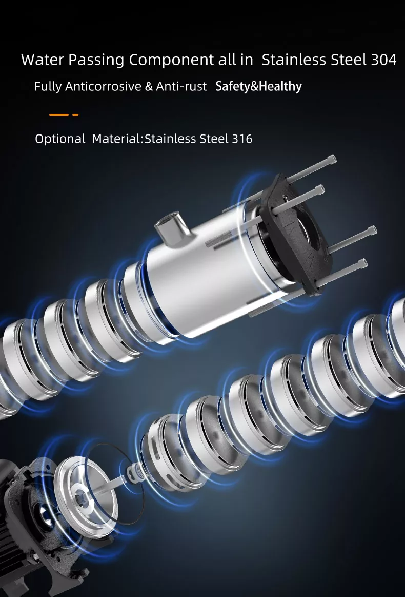 4. Энергоэффективность. Благодаря усовершенствованной конструкции и новейшим технологиям наш многоступенчатый насос оптимизирует энергопотребление, помогая вам снизить эксплуатационные расходы, сохраняя при этом максимальную производительность.