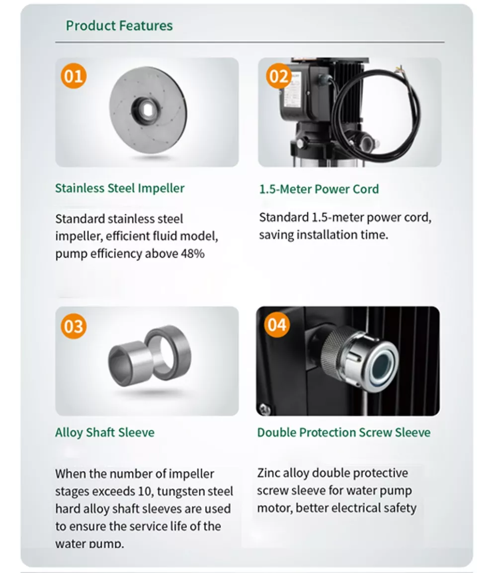 · Механические уплотнения из твердого сплава + фторкаучука снижают утечки и потребление энергии, обеспечивая плавную и бесшумную работу.